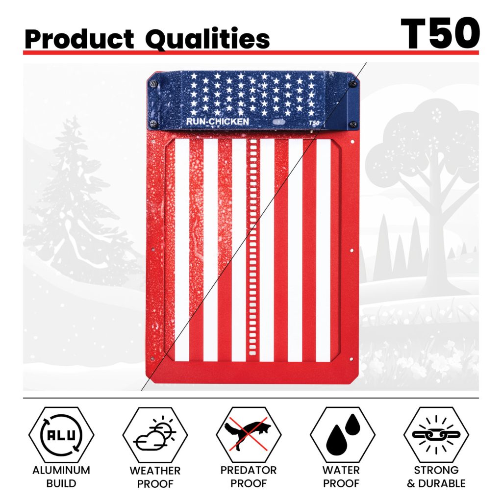 Built with a durable aluminum body, this door is weatherproof and predator-proof, ensuring your “assets” (aka your chickens) remain safe from unwanted attacks. Like a reliable cold wallet, the T80 keeps your flock secure and protected.